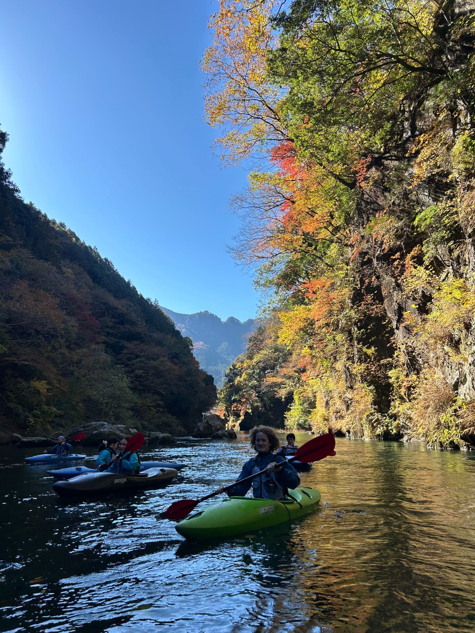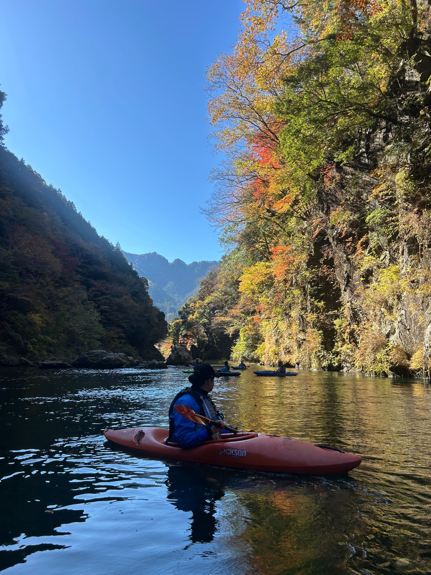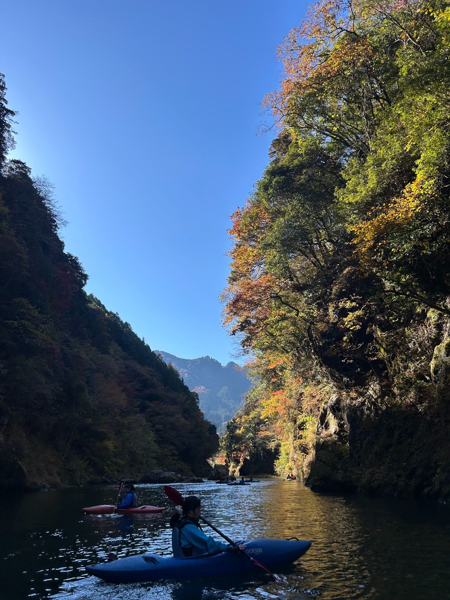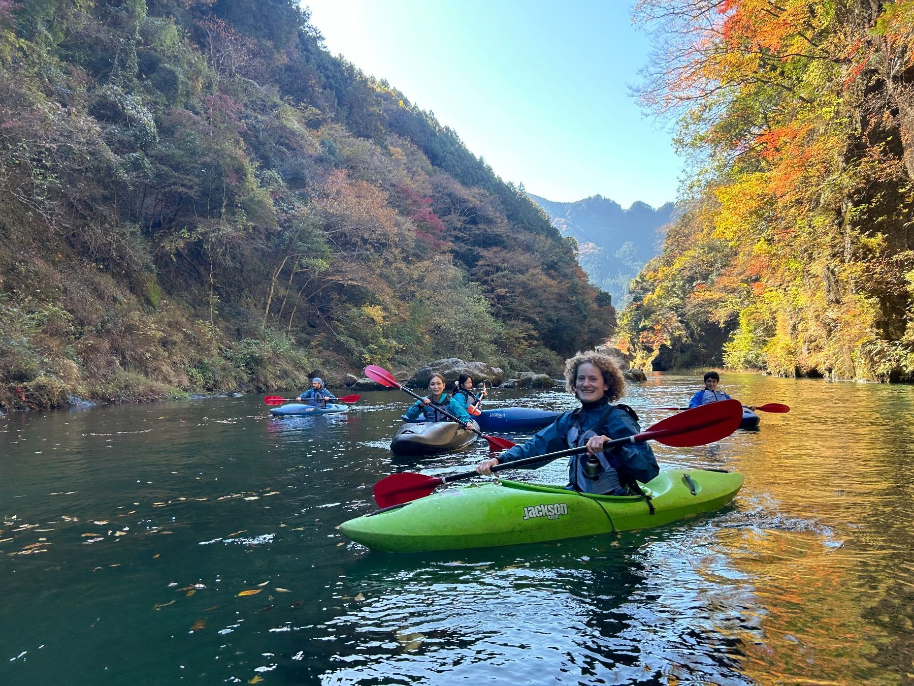 Kayaking through the beautiful autumn colors of the upper reaches of the Tama river followed by a visit to a riverside sake brewery.