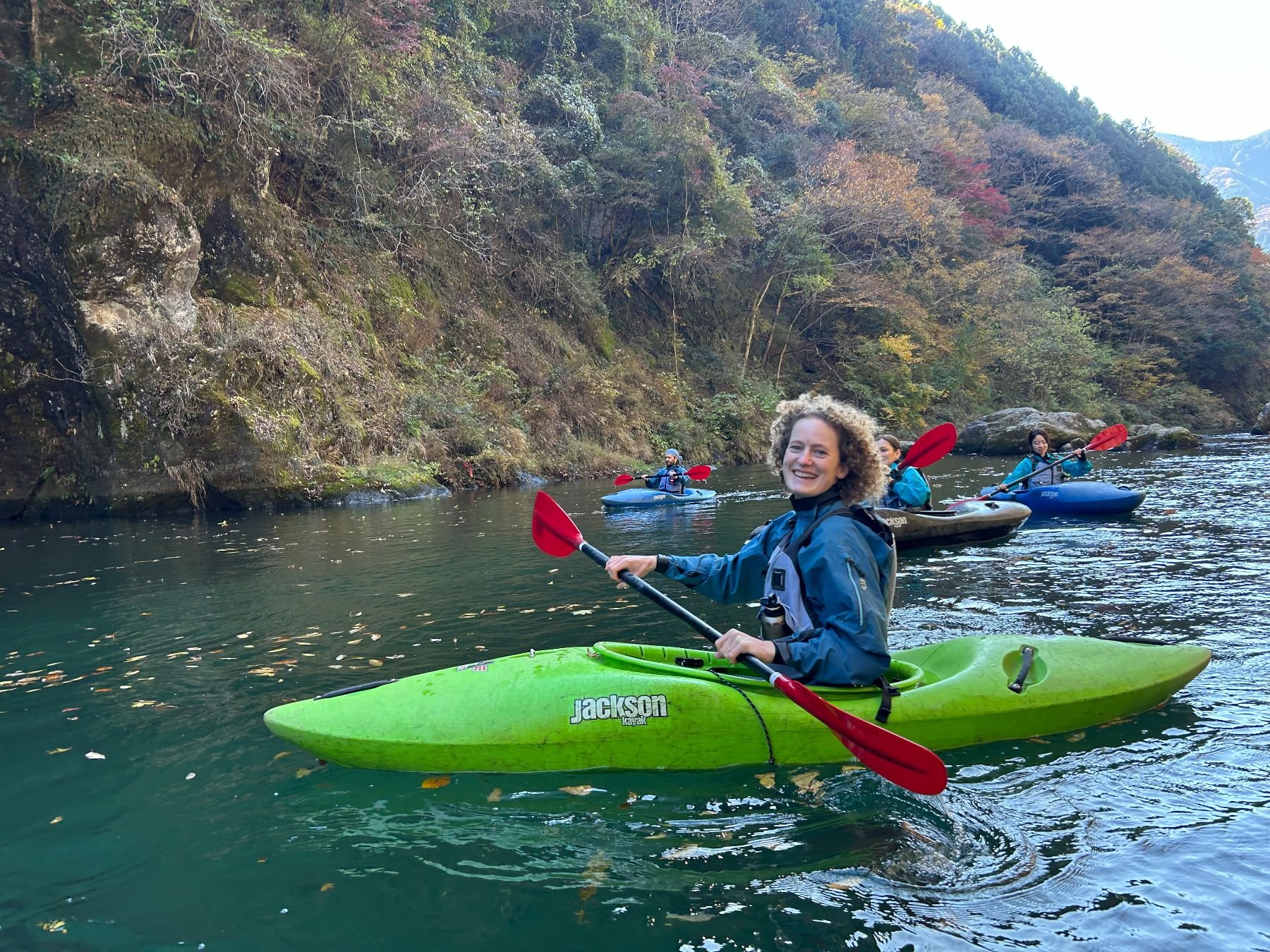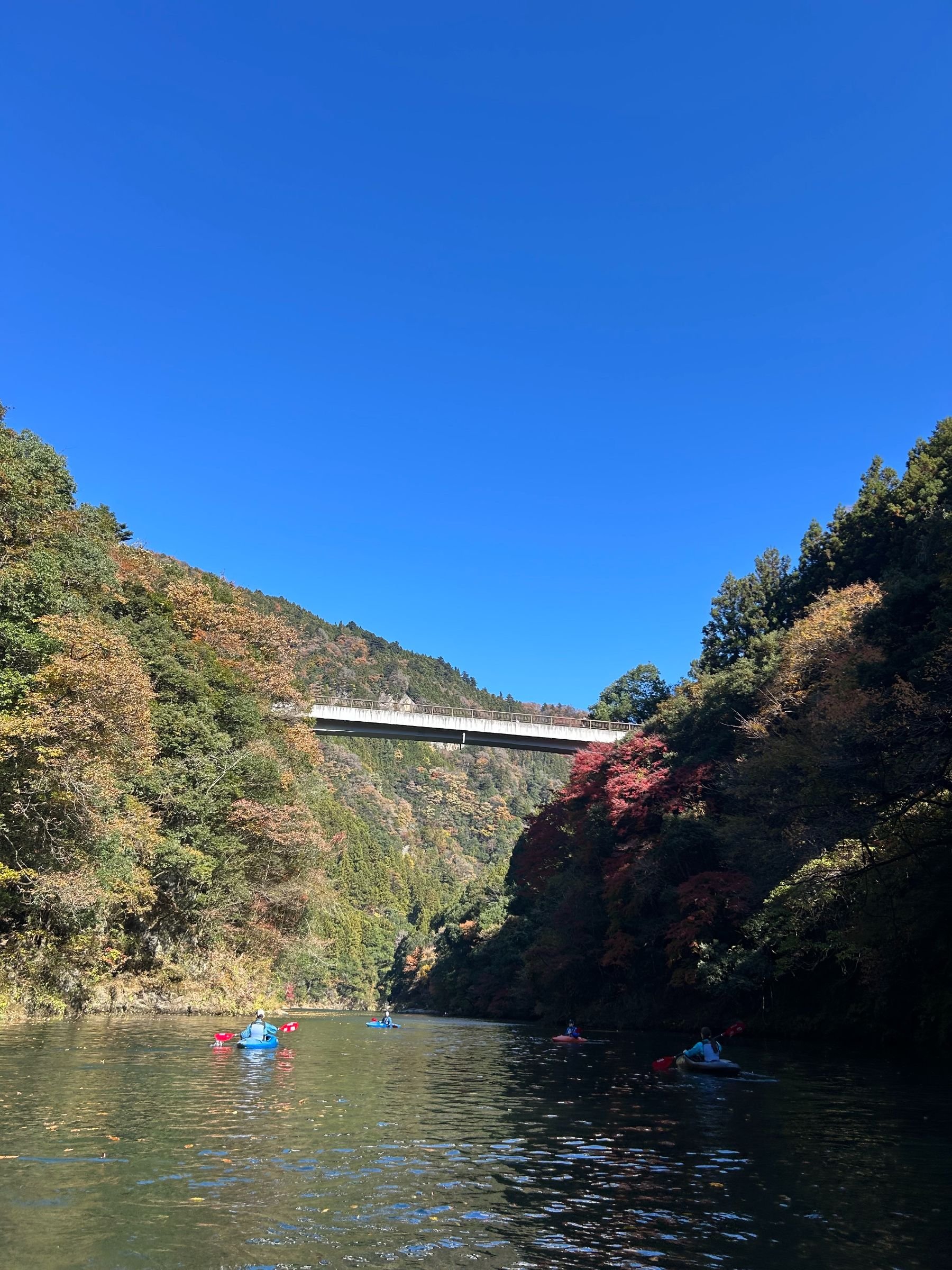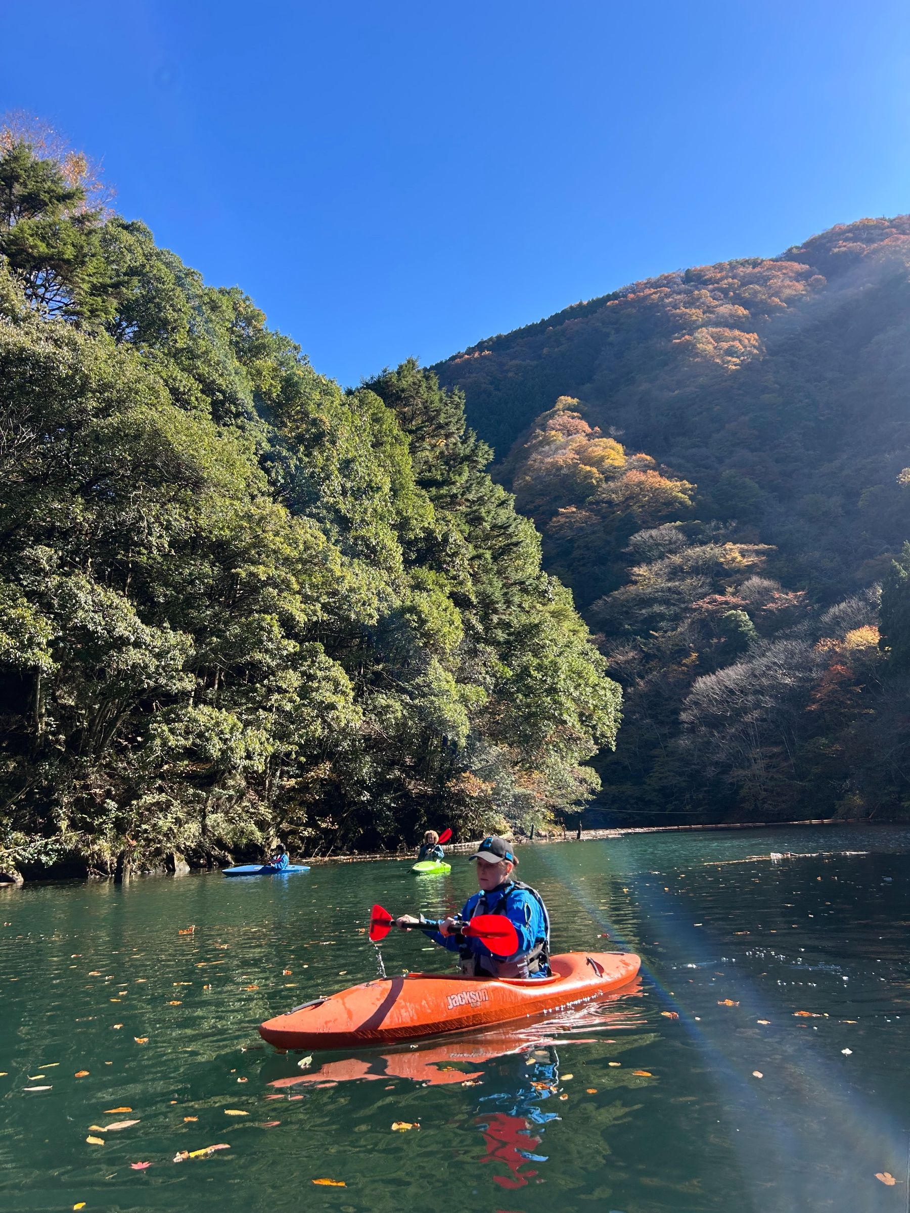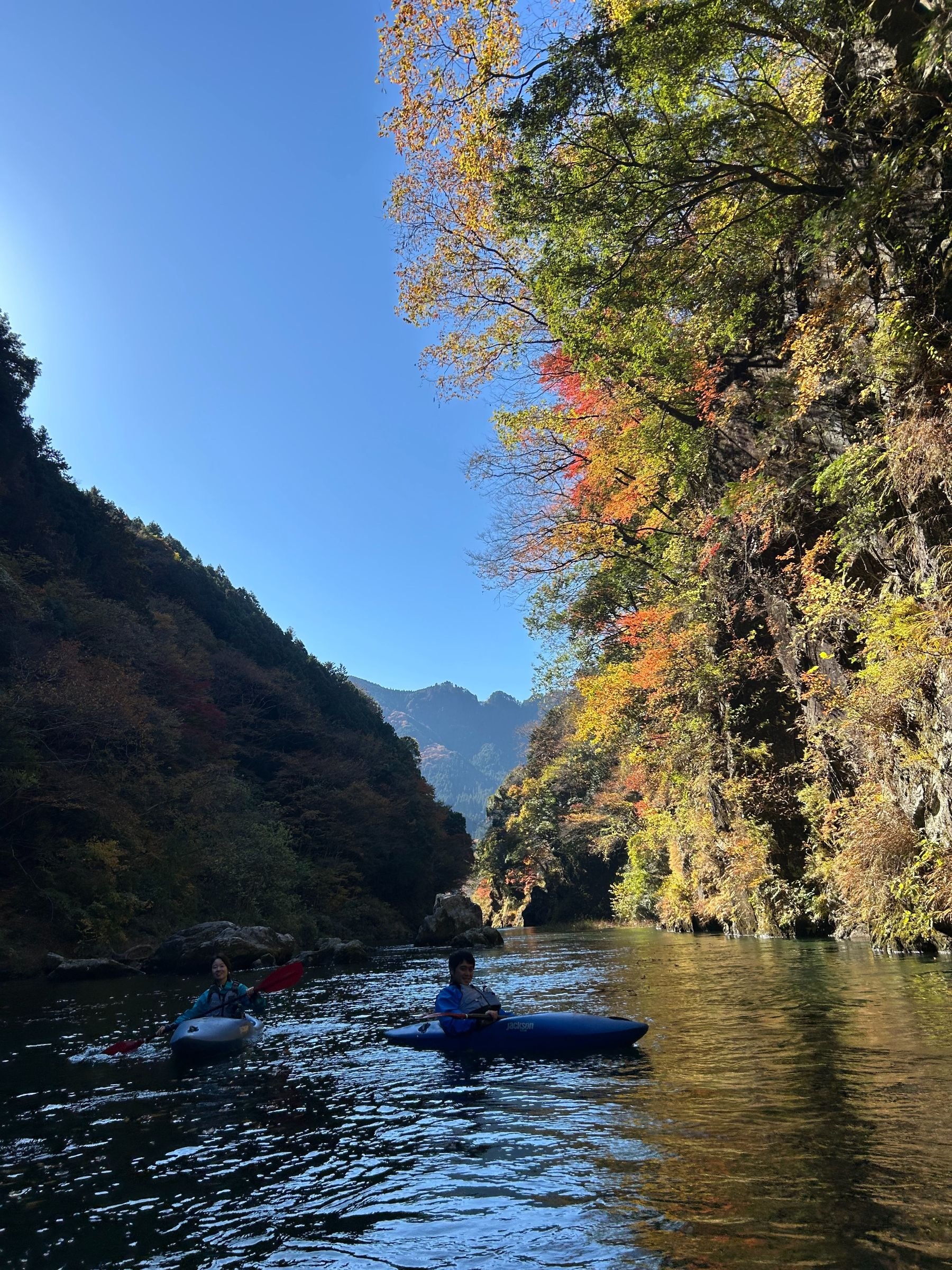 Kayaking through the beautiful autumn colors of the upper reaches of the Tama river followed by a visit to a riverside sake brewery.