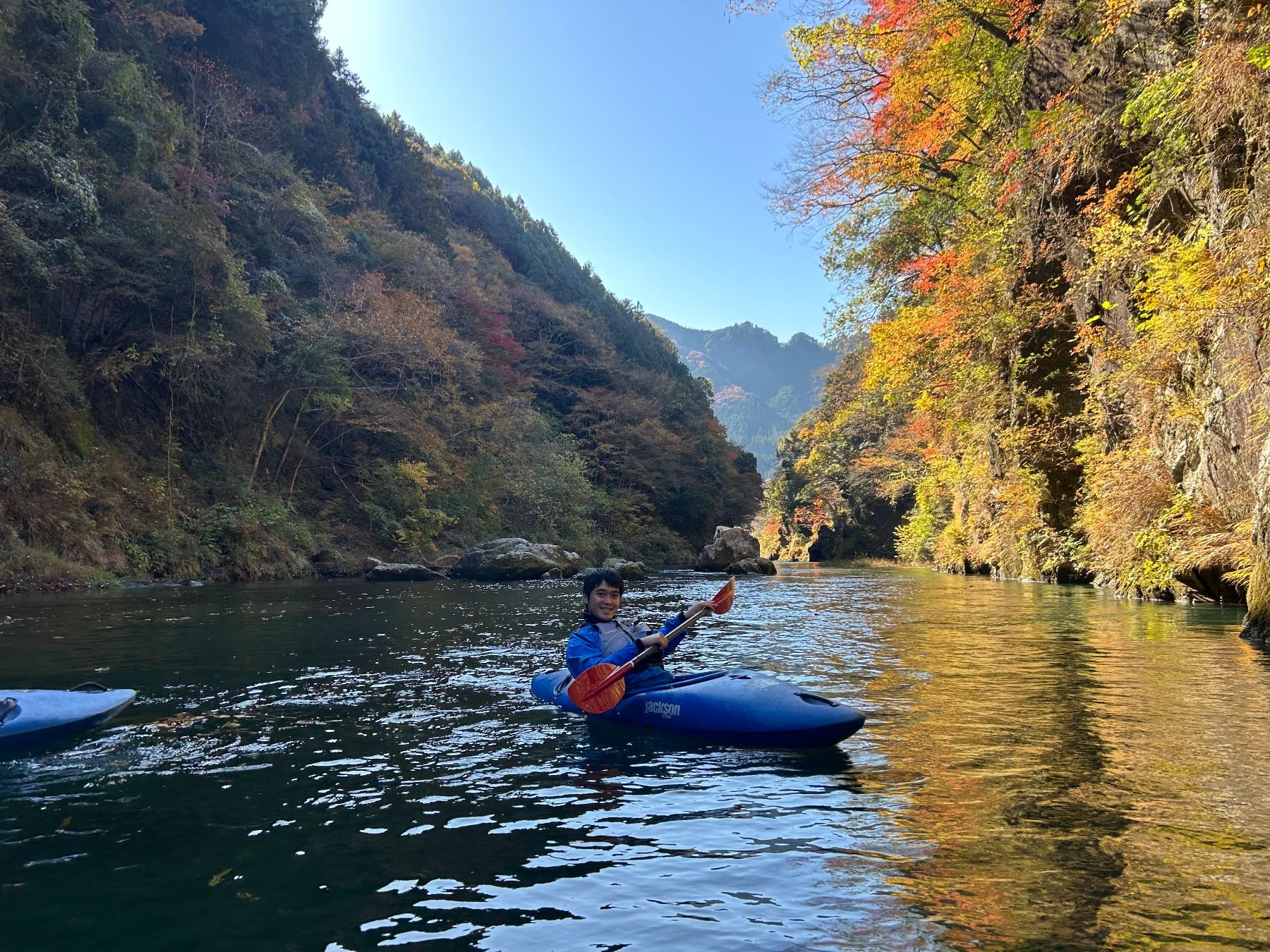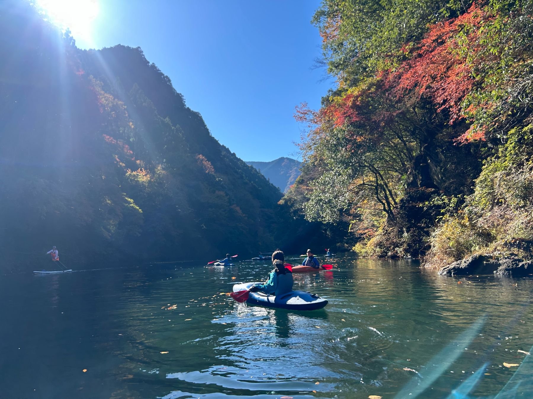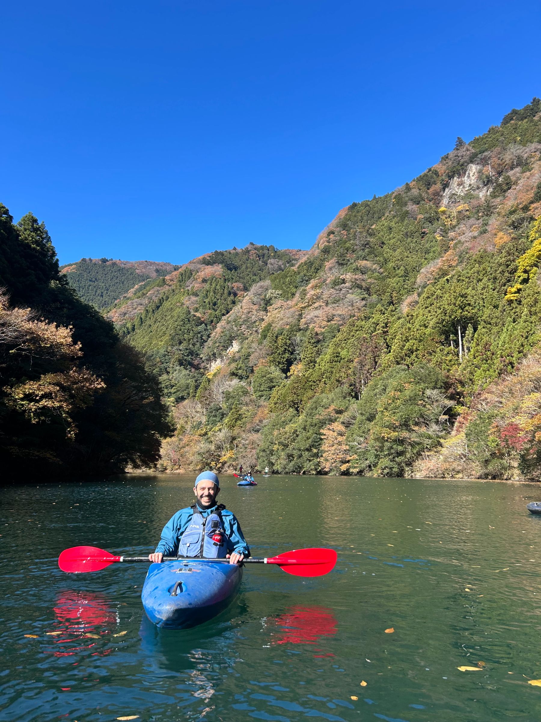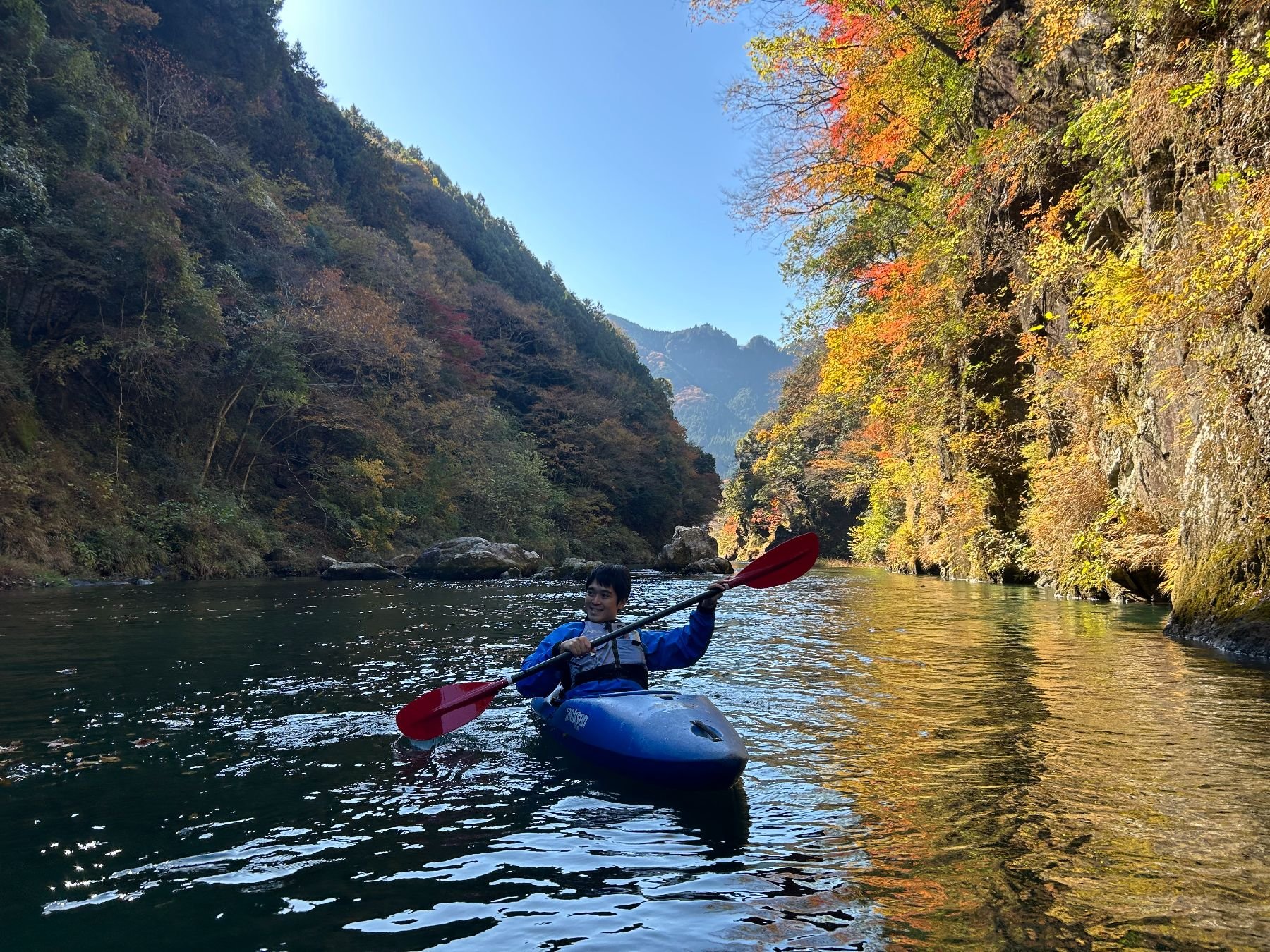 Kayaking through the beautiful autumn colors of the upper reaches of the Tama river followed by a visit to a riverside sake brewery.