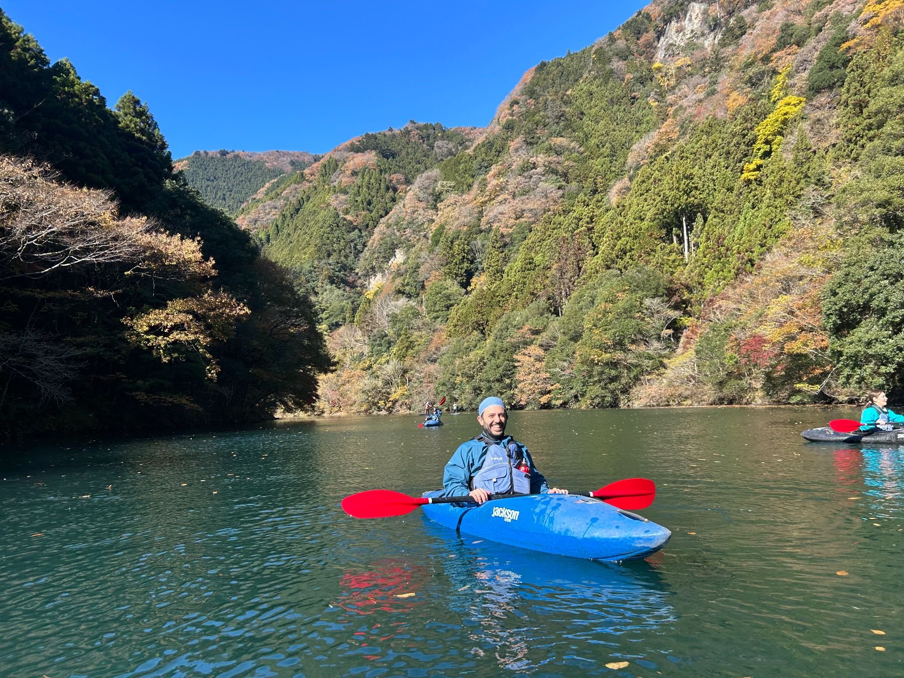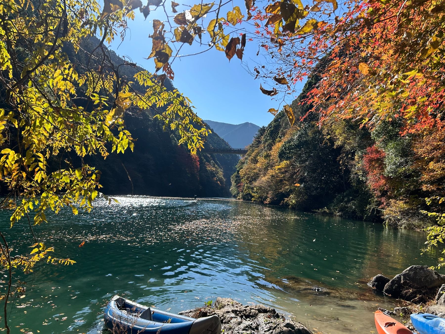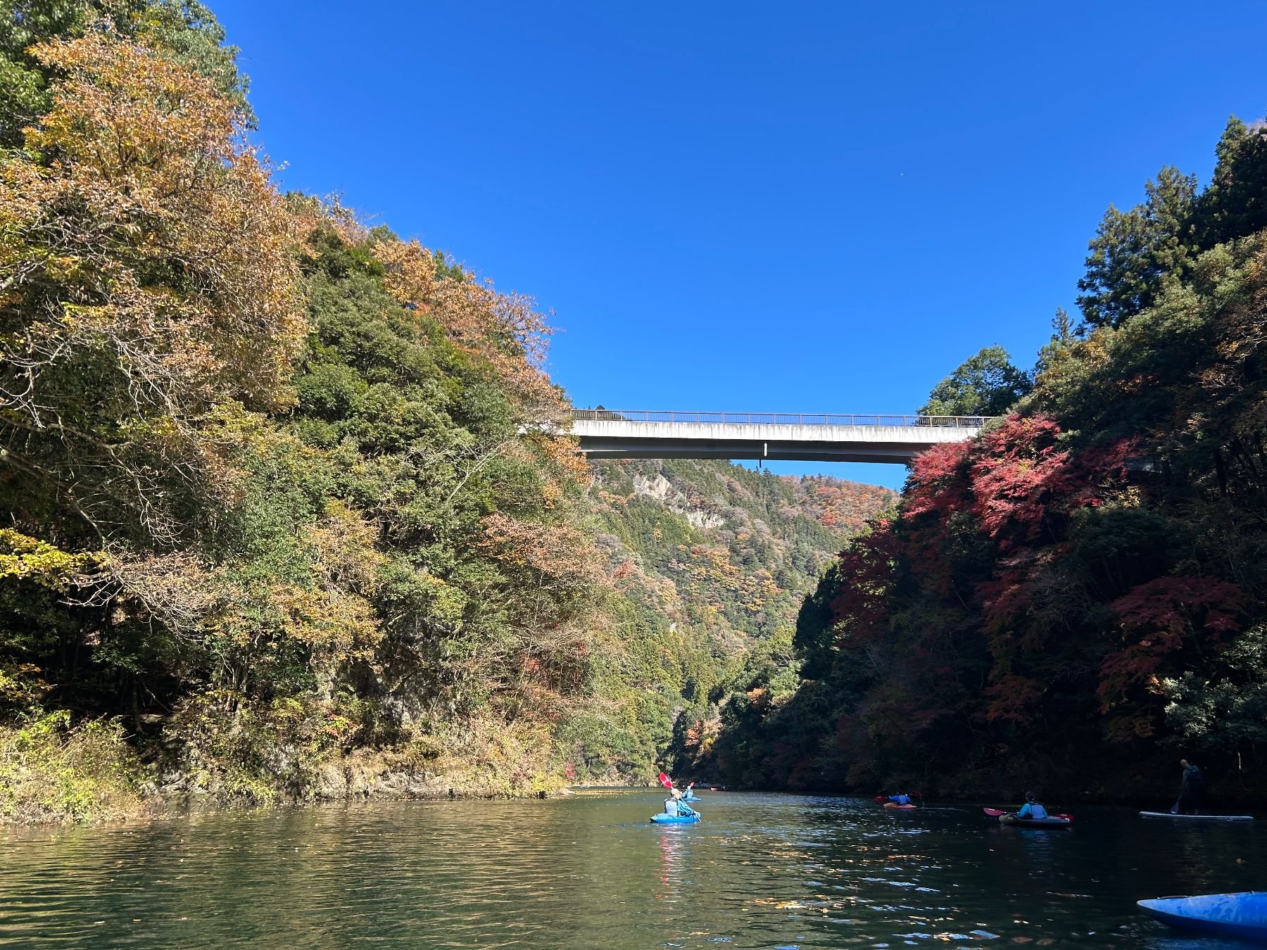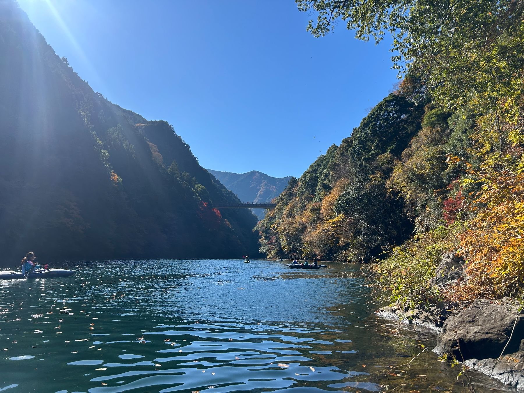Kayaking through the beautiful autumn colors of the upper reaches of the Tama river followed by a visit to a riverside sake brewery.