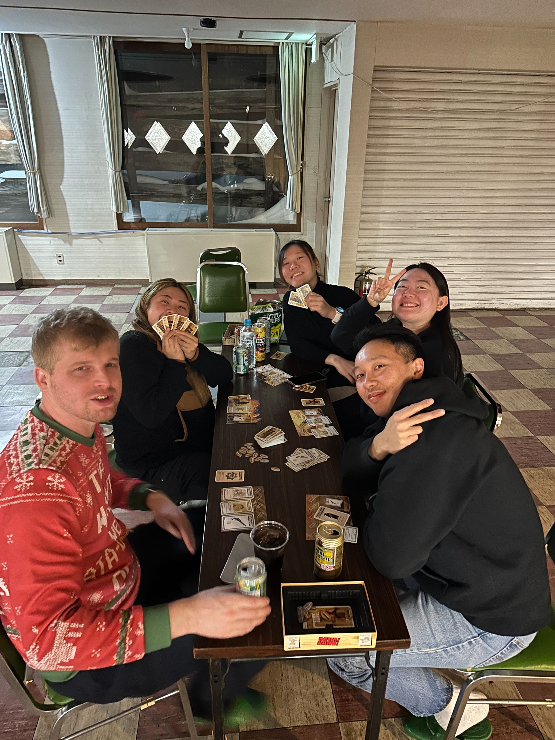 This was my first long weekend snowboarding and I was a little nervous to go but I had so much fun! I made lots of friends who I would run into across the resort and go snowboarding with. Despite the wind occasionally closing top area, there was always somewhere to go. I like how the hotel is located close to the yama no Eki so you have good access to the bus to get to other areas (although you can traverse anywhere). Had fun beating Daff and KG at blokus and getting panini revenge.